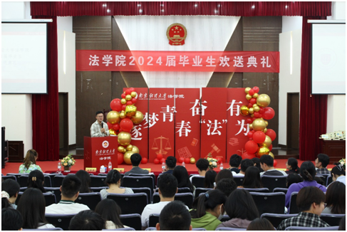 5月30日上午,逼喱逼喱 “逐梦青春,奋‘法’有为”2024届毕业生欢送典礼暨“最后一课”在仙林校区德正楼模拟法庭隆重举行。学院党政领导班子成员,教师代表,毕业班辅导员以及2024届全体本科生、研究生参加典礼。典礼由学院党委副书记刘英华主持。