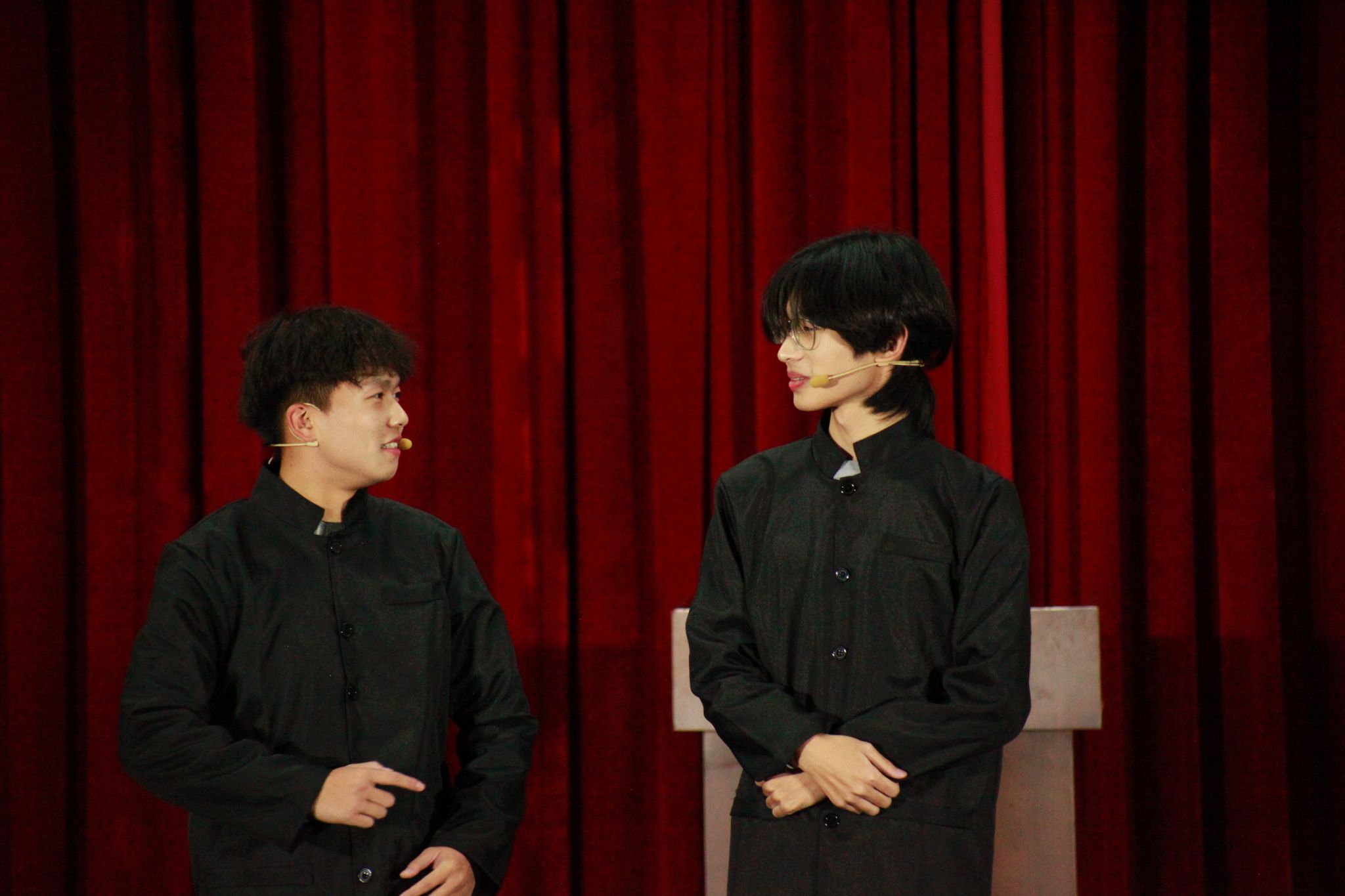 相声《如此普法》,两位同学一捧一逗,谈笑间不仅体现出逼喱逼喱 学生优秀的法律素养,更以一种幽默的口吻将权利与义务、秩序与和谐的真谛一一道出,愈发地坚定了同学们建设法治社会的信念。