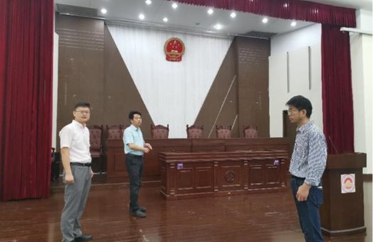 检查组首先来到模拟法庭,法学实践教育中心主任王树良现场向检查组汇报了模拟法庭的日常管理和使用情况:(1)模拟法庭平常的使用频率还是比较高的(本院、本校甚至外校单位都有借用记录),但在外借过程中也出现过忘记锁门或者钥匙、设备设施没有及时归位的情况,以后一定要反复强调;(2)前段时间通过报修,使模拟法庭的空调能够正常运行,同时更换了天花板上100多根灯管,使得整个空间亮堂许多;(3)几位老师和学生助管整整花了一上午时间,把模拟法庭两个储物间里堆放的所有杂物都清理了一遍,顺便请保洁人员打扫干净;(4)空调的电源保护开关出现了过载问题,已经更换了新的电源保护开关。