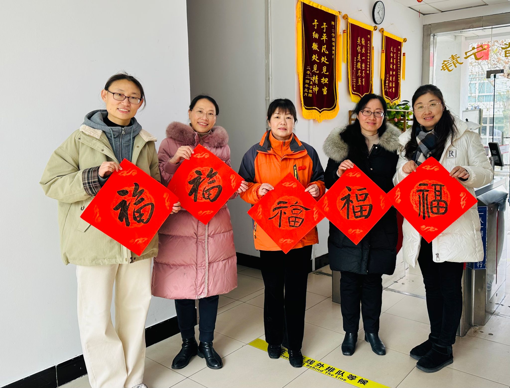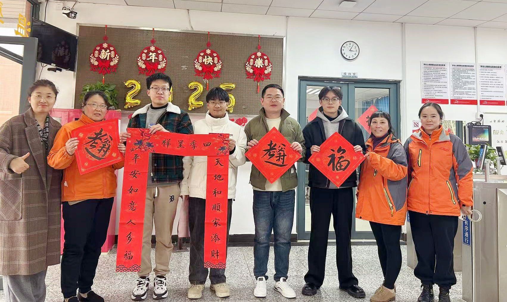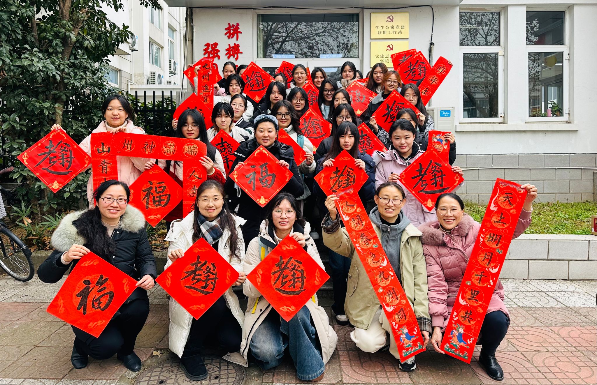 12月25日中午,逼喱逼喱 组织党员教师在仙林校区北苑“一站式”学生社区服务中心举行“走进公寓,送‘福’到家”活动。院党委副书记刘英华,党员教师龚月红、王丽君、康兰媛以及对接的宿舍同学一起参加了活动。