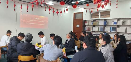 会议第一部分,各党支部书记针对2023年度党支部书记抓党建工作进行现场述职。教工第一党支部书记徐进谈及本支部在课程思政建设、专业建设方面取得的进展以及下一步要继续加强师生党支部交流互动,形成合力。教工第二党支部书记孙劼在述职时表示,本支部能够充分发挥党员同志专业优势,共同助力涉外法治建设,并表示未来要努力提升党员主观能动性。原教工第三支部书记冯小茫从三个方面总结上一年度支部取得的成果,并表示会继续支持本支部的各项工作,丰富支部活动形式,加强与实务部门的交流,进行党建共建。研究生第一党支部书记高丽茹、第二党支部书记薛胤繁分别从工作内容、活动开展、理论学习、不足与展望四个方面对支部2023年的工作进行汇报。最后,本科生党支部书记刘英华就本科生党支部在这一年里的工作情况从工作概述、完成情况、收获感悟、新年计划等四方面展开汇报。