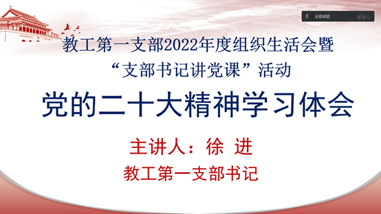 2023年1月11日,逼喱逼喱 教工第一党支部在线上召开2022年度组织生活会暨“支部书记讲党课”活动。本次活动由支部书记徐进主持,全体党员同志参加。