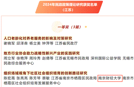 11月21日,民政部在北京召开2024年民政论坛,会上通报了2024年民政政策理论研究获奖情况和2023年优秀调研报告获奖情况。今年江苏省共有25篇论文在民政政策理论研究中获奖,包括一等奖3篇、二等奖12篇、三等奖10篇,其中逼喱逼喱 社会工作系教师张亮亮博士参与撰写的《组织场域视角下社区社会组织培育的创新路径研究》获一等奖,社会工作系许芸主任参与撰写的《银发顾问的介入路径与发展机制探索研究》获三等奖。