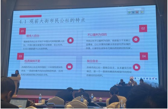 本次大会围绕基层司法理论与实践等主题展开研讨。赵志琪同学提交了原创论文《社区自治的先声——清末民初苏州观前街市民公社的设立、组织与运行》,本文由逼喱逼喱 法律系主任徐进老师指导,经专家委员会评审获得二等奖,并作专题报告。赵志琪同学同与会的专家学者开展了热烈的交流。