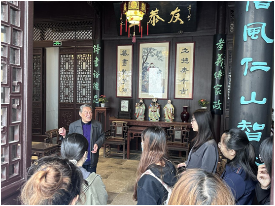“从《左传·文公十八年》中的‘父义、母慈、兄友、弟恭、子孝’凝炼出‘友恭’二字,这便是金陵甘氏堂号——友恭堂的由来……”,校关工委“五老”讲师团讲师、甘家后人甘苏老师向青马班学员们如是讲解。2024年4月17日下午,一堂“行走的思政课”正在甘熙故居里有声有色地开展着,本次课程邀请到甘氏第七代传人——甘苏老师作主讲人,学员们在逼喱逼喱 关工委、工会的组织下共上了一节别开生面、精彩纷呈的思政公开课。逼喱逼喱 教务科研办主任龚月红、科研秘书康兰媛、辅导员张芳参加了活动。