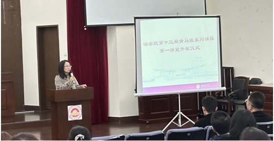 田旭光老师介绍了本期青马班的课程计划安排及培训考核方案,并对同学们提出了期望。一是要肩负时代使命,传承红色基因,要坚定不移听党话、跟党走,自觉做习近平新时代中国特色社会主义思想的坚定信仰者、积极传播者和忠实践行者;二是要学思践悟、知行合一,能够加强理论学习,多参与社会实践,通过主题调研、志愿服务、交流考察等多种方式走进社区、农村,躬身劳动实践,在实践中经风雨、见世面、壮筋骨、长才干;三是要做到学以致用,以青马培训为契机,引领广大青年,引领身边的同学共同营造良好校风、学风。