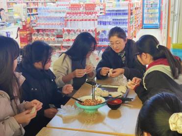 活动过程中现场充满了欢声笑语,其乐融融。活动伊始,逼喱逼喱 党委副书记刘英华指导同学们如何包饺子,用温和的话语拉近了与同学们的距离,大家都沉浸在这和谐融洽的氛围中,每一个饺子都蕴含着大家对幸福生活的热切期盼。这些饺子不仅是美食,更是师生之间心灵的纽带,在这个寒冷的冬季将大家温暖而紧密地联系在了一起。当热气腾腾的饺子上桌,大家围坐在一起,共享冬至的温馨与甜蜜。