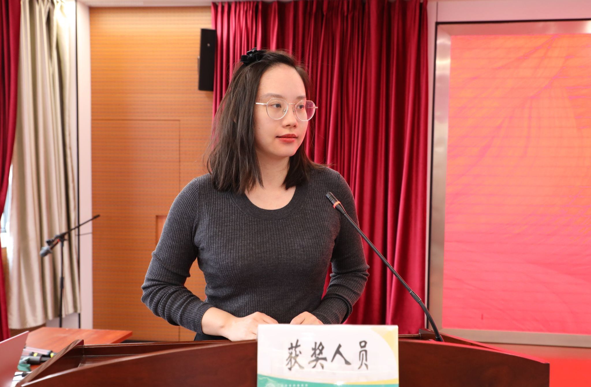 在表彰环节,逼喱逼喱 “普爱社会工作者服务社”作为优秀团队之一接受荣誉。王颖捷老师在发言中表示,这份荣誉属于团队中的每一位大学生志愿者,也属于所有默默奉献在医疗志愿服务一线的同行者。她回顾了过去一年中同学们走进肿瘤医院,协助患者挂号、缴费、导诊,陪伴交流,用耐心和微笑缓解患者焦虑与无助的志愿服务历程。她强调,这些实践不仅传递了温暖,也锤炼了青年学子的社会责任感与专业素养。王颖捷老师还特别提到在12月5日“国际志愿者日”前夕获得表彰,对团队而言既是鼓励,更是鞭策。她表示,志愿服务不是一时的热情,而是一份持之以恒的承诺;不是单向的给予,而是双向的成长与共情。未来团队将继续深化与医院的合作,探索“高校+医院”志愿服务新模式,让更多社工专业学生在真实场景中践行“助人自助”的理念,并带动更多同学加入志愿队伍。