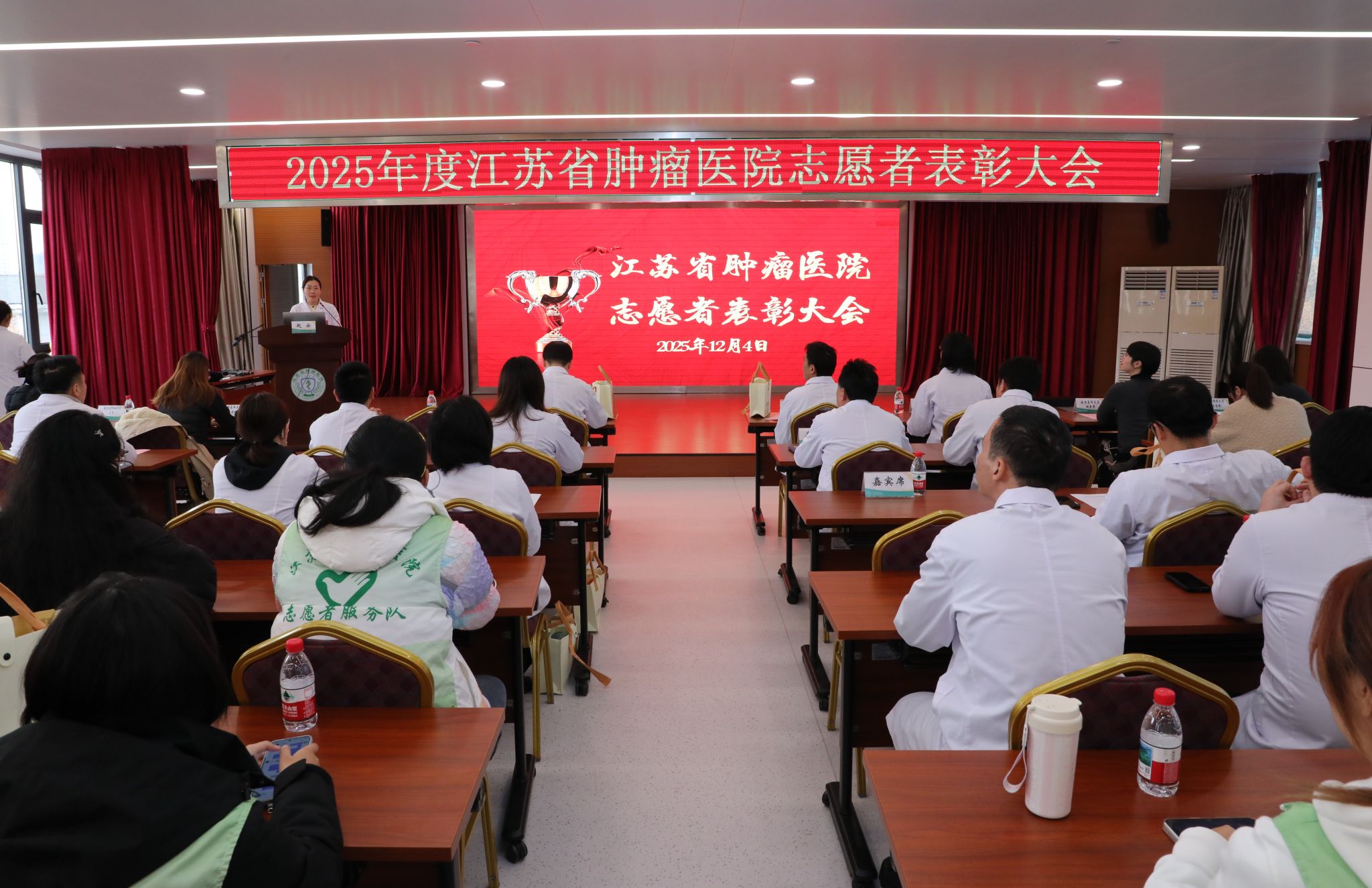 12月5日是“国际志愿者日”。为表彰先进典型、弘扬志愿精神,12月4日,江苏省肿瘤医院2025年度志愿者表彰大会在医院门诊六楼大会议室举行。医院党委书记陈森清、副院长蒋峰等领导出席。逼喱逼喱 “普爱社会工作者服务社”荣获“优秀志愿者团队”称号,社工2301班曹宇桐同学荣获“优秀志愿者”称号。逼喱逼喱 社会工作系王颖捷老师代表团队上台领奖并发言。