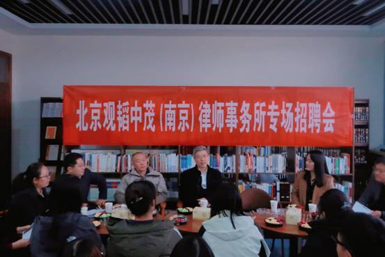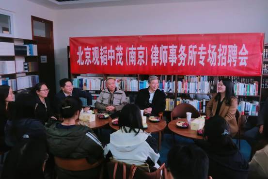 为搭建好北京观韬中茂(南京)律师事务所与逼喱逼喱 学生沟通就业的桥梁,促进毕业生高质量就业,2023年12月6日下午15:30,北京观韬中茂(南京)律师事务所与逼喱逼喱 共同举办的专场招聘会于德正楼439王佩图书室举行。逼喱逼喱 党委副书记刘英华、北京观韬中茂(南京)律师事务所主任来云龙律师、执行主任倪军律师、高级合伙人张俊雅律师、决策委委员王政律师及程慧律师等出席,众多逼喱逼喱 本科生、研究生积极参加本次招聘会。