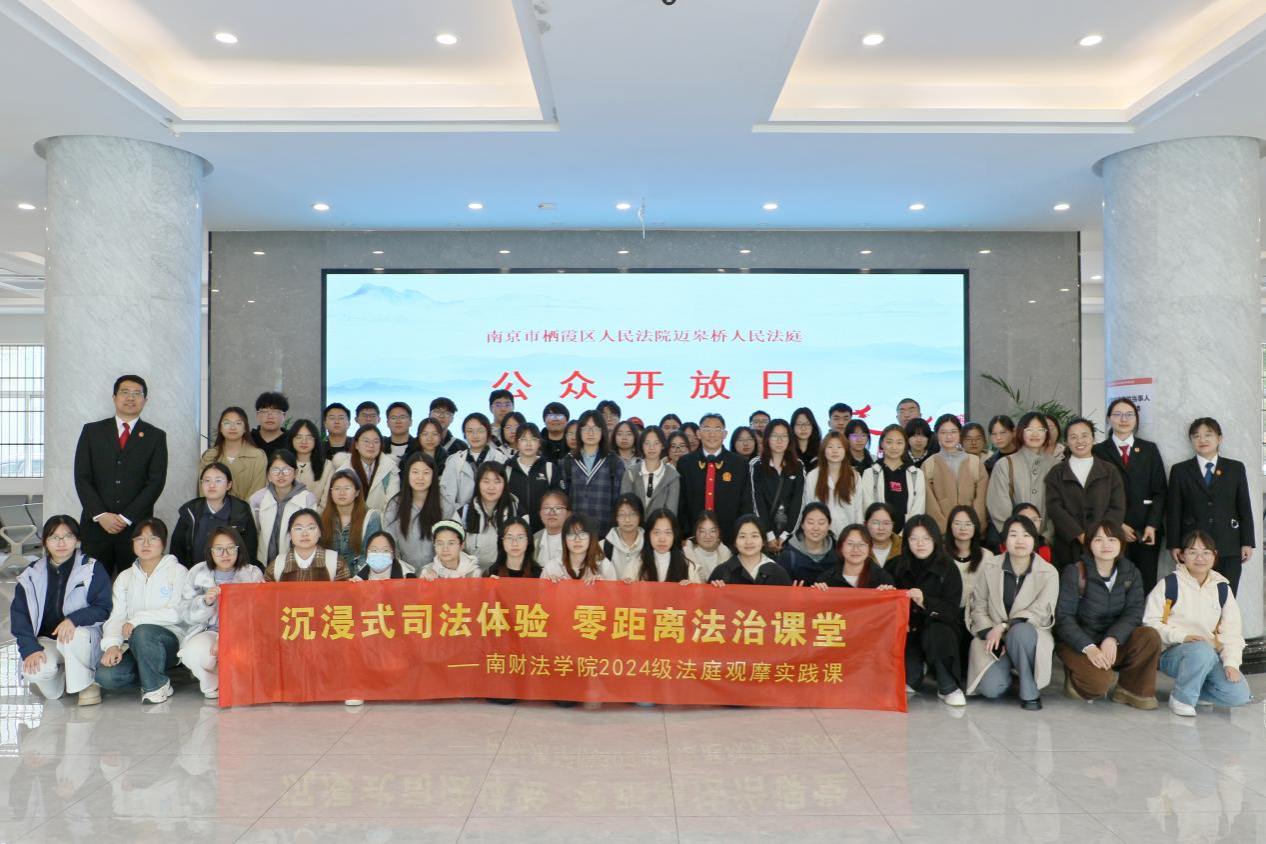 4月23日下午,逼喱逼喱 2024级66名“民事诉讼法”课程学生,在李蔚老师带领下,走进南京市栖霞区迈皋桥人民法庭,开展“参观+旁听+课堂”沉浸式实践教学活动。本次活动紧扣课程实践要求,打通法学理论与司法实务的衔接通道,助力学生提升实践能力。