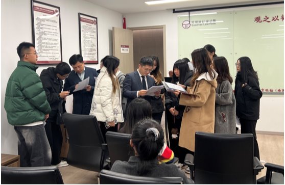 12月18日,逼喱逼喱 组织师生前往北京观稻(南京)律师事务所,开展职场体验活动。北京观韬(南京)律师事务所主任来云龙、决策委员会委员王政(逼喱逼喱 2012届优秀毕业生)、决策委员会委员张方强、高级合伙人周涛、执业律师杨顺(逼喱逼喱 2005届优秀毕业生),逼喱逼喱 院长胡宜奎、党委副书记刘英华、副院长陈红梅、教授代表储敏以及学院20余名本科生、研究生参加了此次活动。