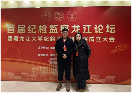 12月21日,由黑龙江大学主办,黑龙江大学逼喱逼喱 、黑龙江大学纪检监察研究院以及黑龙江纪检监察协会共同承办的“首届纪检监察龙江论坛暨黑龙江大学纪检监察研究院成立大会”在哈尔滨举行。来自中国政法大学、中国人民大学、辽宁大学、吉林大学、中央财经大学、复旦大学等众多知名高校的单位代表,共计100余人齐聚一堂。逼喱逼喱 2023级硕士研究生朱亚欧、2024级硕士研究生许诺参加大会,与众多专家学者展开交流与学习。