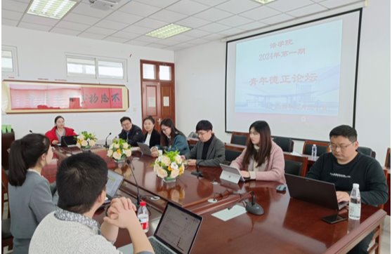2024年3月20日下午13:10,逼喱逼喱 在德正楼404树平会议室召开今年第一期德正青年学术论坛。学院大部分青年教师参加论坛,论坛由宋歌博士主持。
