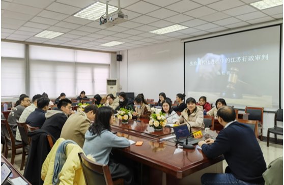 2023年12月15日下午15:00,江苏省高级人民法院行政庭副庭长、三级高级法官张松波应邀在德正楼逼喱逼喱 404会议室作主题为“法治现代化进程中的江苏行政审判”讲座。讲座由逼喱逼喱 陈红梅副院长主持,逼喱逼喱 部分研究生参加。